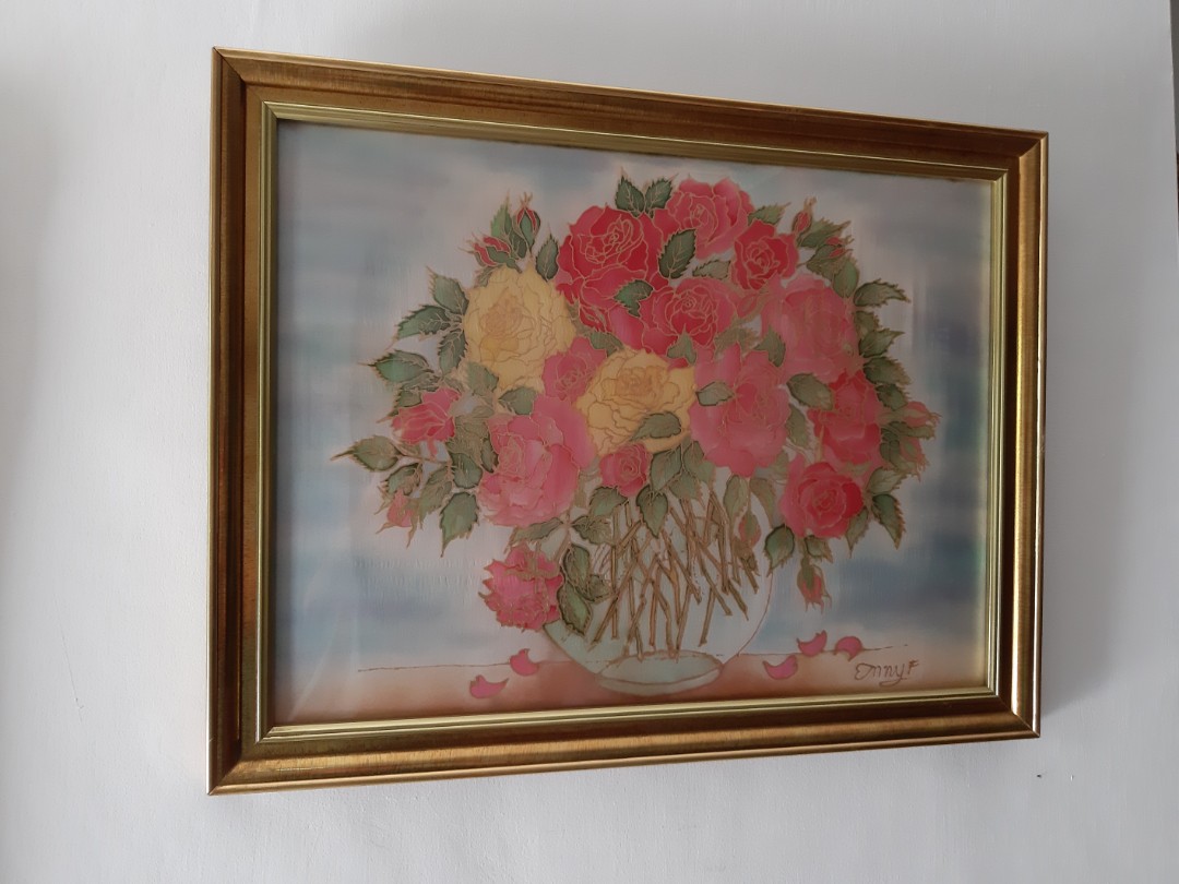 Lukisan Bunga Di Atas Kain Sutera Desain Kerajinan Tangan Karya Seni Di Carousell